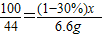 (6)设至少需要含杂质30%的石灰石的质量为x,则: