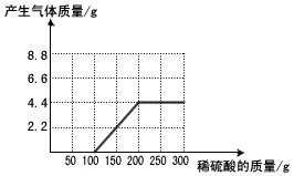 有NaOH和Na2CO3混合物l8.6g。为测定其中NaOH的质量,将固体溶于水,并逐渐加入稀硫酸至100g时,开始产生气体;再加入稀硫酸至100g时,不再产生气体,生成气体共4.4g (提示:Na2CO3+H2SO4==Na2SO4+CO2↑+H2O)