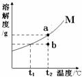 右图为晶体M(不含结晶水)的溶解度曲线,a、b两点分别表示M物质的溶液。下列有关说法或a、b间的转化方法错误的是![]()