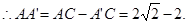 如图,把正方形ABCD沿对角线AC的方向移动到正方形A′B′C′D′的位置,它们的重叠部分(图中的阴影部分)的面积是正方形ABCD面积的一半,若AD=2,则正方形移动的距离A′A的长是 。