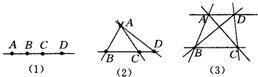 (2)若四个点不在同一条直线上,则能画出四条或六条直线[如图(2),(3)].