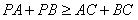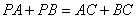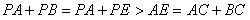 (3)设点P是x轴上的任意一点,分别连结AC、BC,试判断:PA+PB与AC+BC的大小关系,并说明理由。