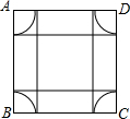 解:如图,四个角上的图形合起来刚好是一个半径为0.5的圆,周长为:2π×0.5=π,