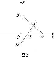 ①M在x轴负半轴,可通过证△BON≌△MOG,得出OM=OB,据此可求出M点的坐标.
