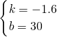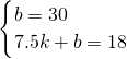 点A、B坐标分别为(0,30),(7.5,18)代入:y=kx+b,得: