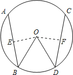 分析:过点O分别作OE⊥AB于点E,OF⊥CD于点F.先由圆心角、弧、弦的关系,得出OE=OF,再根据HL证明Rt△BOE≌Rt△DOF,进而得出∠OBA=∠ODC.