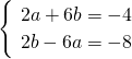 代入方程:ax-by=-4与bx+ay=-8中得: