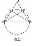 如图11,△ABC的两个顶点B、C在圆上,顶点A在圆外,AB、AC分别交圆于E、D两点,连结EC、BD.