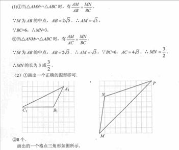 (1)如图1,点M为AB的中点,在线段AC上取点M,使△AMN与△ABC相似,求线段MN的长;