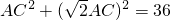 当P点与F点重合时,x=AC最大,此时有PC2=PA•PB=6×12