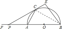 分析:求y与x的函数关系式,由题意发现需求出BE,通过证明Rt△ABC∽Rt△CBE即可;P为线段AF上的一个动点(不与A重合),C为切点,可知当P点与A点重合时,AC=0最小,当P点与F点重合时,x=AC最大,求出AC的值,即可确定x的取值范围.