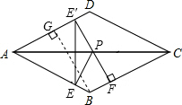 分析:先找出点E关于AC的对称点E′,过点E′作E′F⊥BC于F,交AC于P,根据轴对称确定最短路线问题以及垂线段最短可知E′F为PE+PF的最小值的最小值,过点B作BG⊥AD于G,解直角三角形求出BG,再根据平行线间的距离相等即可得解.