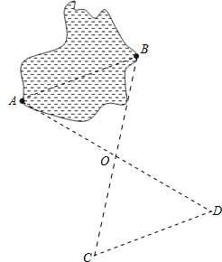 (2)在湖岸上选一点O,连接BO并延长到C使BO=OC,连接AO并延长到点D使OD=AO,连接CD,则AB=CD.测量DC的长度即为AB的长度;