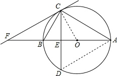 分析:(1)连接AD.根据∠BCD=∠BAC,∠CBE=∠ABC,证出△CBE∽△ABC,可得∠BEC=90°,于是∠D=∠CBA=∠ACD,故AC=AD.