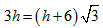 ∴h=(h+6)tan30°,