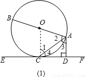 如图①,AB是⊙O的直径,AC是弦,直线EF和⊙O相切于点C,AD⊥EF,垂足为D.(1)求证:∠DAC=∠BAC;