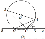 (2)若把直线EF向上平行移动,如图②,EF交⊙O于G、C两点,若题中的其它条件不变,这时与∠DAC相等的角是哪一个?为什么?