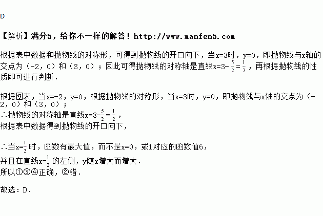 小聪观察上表,得出下面结论:①抛物线与轴的一个交点为![]()