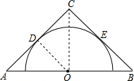 分析:首先连接OD,OC,由半圆O的直径在AB上,且与AC、BC都相切,根据切线长定理,可得∠OCA=∠OCB,根据切线的性质,可得OD⊥AC,又由在Rt△ABC中,∠C=90°,tanA=1,AB=2