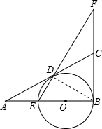 如图,在△ABC中,∠B=90°,O是AB上一点,以O为圆心,OB为半径的圆与AB交于E,与AC切于点D,直线ED交BC的延长线于F.