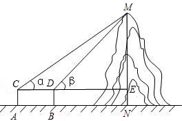 ②在测点A与小山之间的B处安置测倾器(A、B与N在同一条直线上),测得此时山顶M的仰角∠MDE=β;