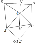 分析:(1)先根据SAS证明△ABC≌△AED,得出BC=ED,∠ABM=∠AEN,再由直角三角形斜边上的中线等于斜边的一半得出BC=2AM,即DE=2AM;又由∠ABM=∠BAM,∠BAM+∠EAN=90°,得出∠AEN+∠EAN=90°,从而证明出AM⊥DE;