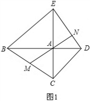 如图1,以△ABC的边AB,AC为腰向外作等腰三角形ABE和ACD,且AB=AE,AC=AD,M为BC边的中点,MA的延长线交DE于N