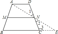分析:连接AN并延长,交BC的延长线于点E,先根据平行线的性质求出△ADN≌△ECN,求出MN是△ABE的中位线,再根据三角形的中位线定理解答即可.