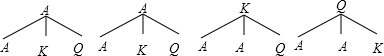 分析:首先根据题意画出树形图,然后得出两张都是A的数目,进而求出两张都是A的概率.