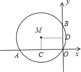 分析:过M点作MC⊥AO于C,MD⊥OB于D,根据垂径定理得到OC=AC,OD=BD,易得C点坐标为(-2,0),D点坐标为(0,1),然后确定M点坐标.