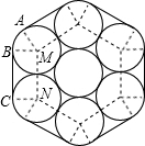 由题意可知BC是两圆外公切线,所以BC=MN=2r,在这个围成的大图形中包含6个同BC一样的线段和6个与弧AB相等的弧长.