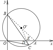 (2)若OC2=CD•CB,则三角形OCB相似于三角形DCO,则∠COD=∠CBO.又∠COD=∠CBA,则∠CBO=∠CBA,所以点C是弧OA的中点.连接O′C,根据垂径定理的推论,得O′E⊥OA.再进一步根据垂径定理和勾股定理进行计算即可.