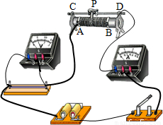 【答案】分析:(1)电源、开关、电表、滑动变阻器串联接入电路,电压表并联在电阻两端,连接电路图时,注意电压表正负接线柱不要接反,注意滑动变阻器的接法.