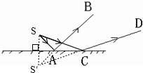 点光源S发出的光线经平面镜反射后.有两条光线经过AB和CD.如图.在图中作出点光源S.