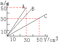 由上图可知,VA=30cm3时mA=50g,VC=50cm3时mC=30g,