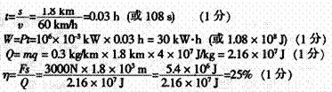 (2) YF型公交汽车每千米消耗燃油0.3 kg,行驶1.8 km路程所消耗的燃油完全燃烧放出多少热量?公交汽车的效率是多少?