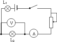 解:由题意可知,电路为串联电路,故可依次将L1、L2、电流表串联起来,连在电源两端,电压表并联在L2两端即可;原理图如下: