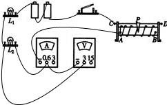 分析:由题意要求可知两电阻串联,电压表并联在L2两端,电流表直接接在电路中;实物图连接时,首先将电池串接起来,再依次将各串联部分的各电器串接;注意两表量程的选择,同时注间滑动变阻器的接法,导线不能交叉.