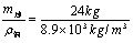 m实=ρ铜V铜=8.9×103 kg/m3×4×10-3 m3=35.6 kg>24 kg