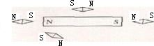 分析:由条形磁铁外部磁感线的形状可得到小磁针N极受力方向,即N极指向的方向.