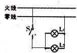 家庭电路中的电灯是并联,一个开关控制两个电灯,则开关在干路上,且开关连在火线与电灯之间.