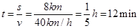 ;另一个标志牌表示该点距离西大桥8km;所以匀速行驶的汽车最快需时间