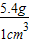 故答案为:(1)5.4g/cm3;(2)1.8g/cm3;(3)3cm3;(4)5.4.