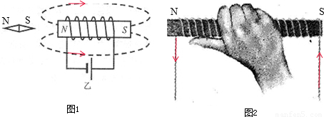 (2)安培定则内容为:用右手握住螺线管,让四指指向螺线管中电流的方向,则大拇指所指的那端就是螺线管的北极;由图可以判断出通电螺线管的磁极和电流的方向.