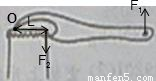 如图所示,开启瓶盖的起子可以看作是杠杆,试在图上标出杠杆的支点O、阻力F及阻力臂L.