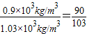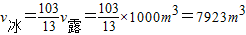 浮在海面上的冰山,水上部分的体积为1000m3,求冰山的总体积?(ρ冰=0.9×103kg/m3,ρ海水=1.03×103kg/m3)