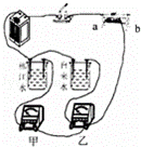 (4)实验中发现电流表甲的示数大于电流表乙的示数.由此可判断左烧杯水的导电性能好,说明左杯是废水,右杯是自来水;