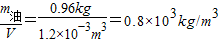 解答:解:m油=m总-m瓶=1.46kg-0.5kg=0.96kg