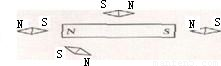 【答案】分析:由条形磁铁外部磁感线的形状可得到小磁针N极受力方向,即N极指向的方向.