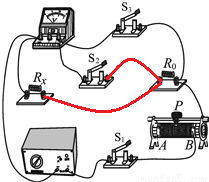 解答:解:(1)电阻R0与待测电阻Rx串联,开关S2与电阻R连接,如下图所示: